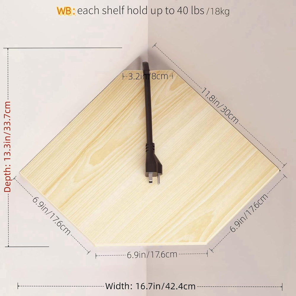 Wooden corner hanging shelves